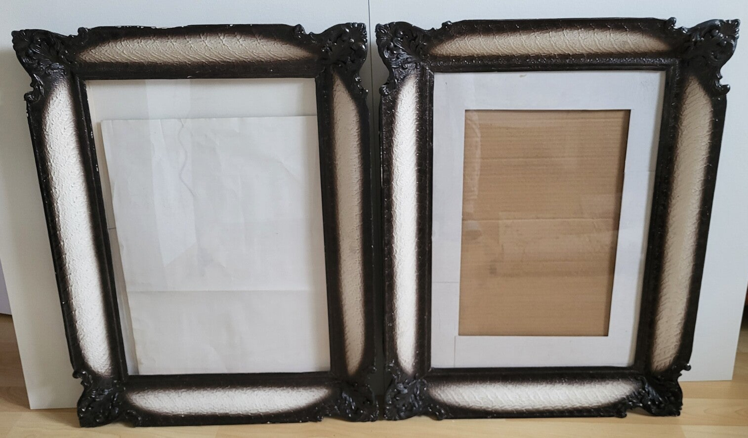 Alter Holzbilderahmen Handgearbeitet schwarz weiss lackiert
