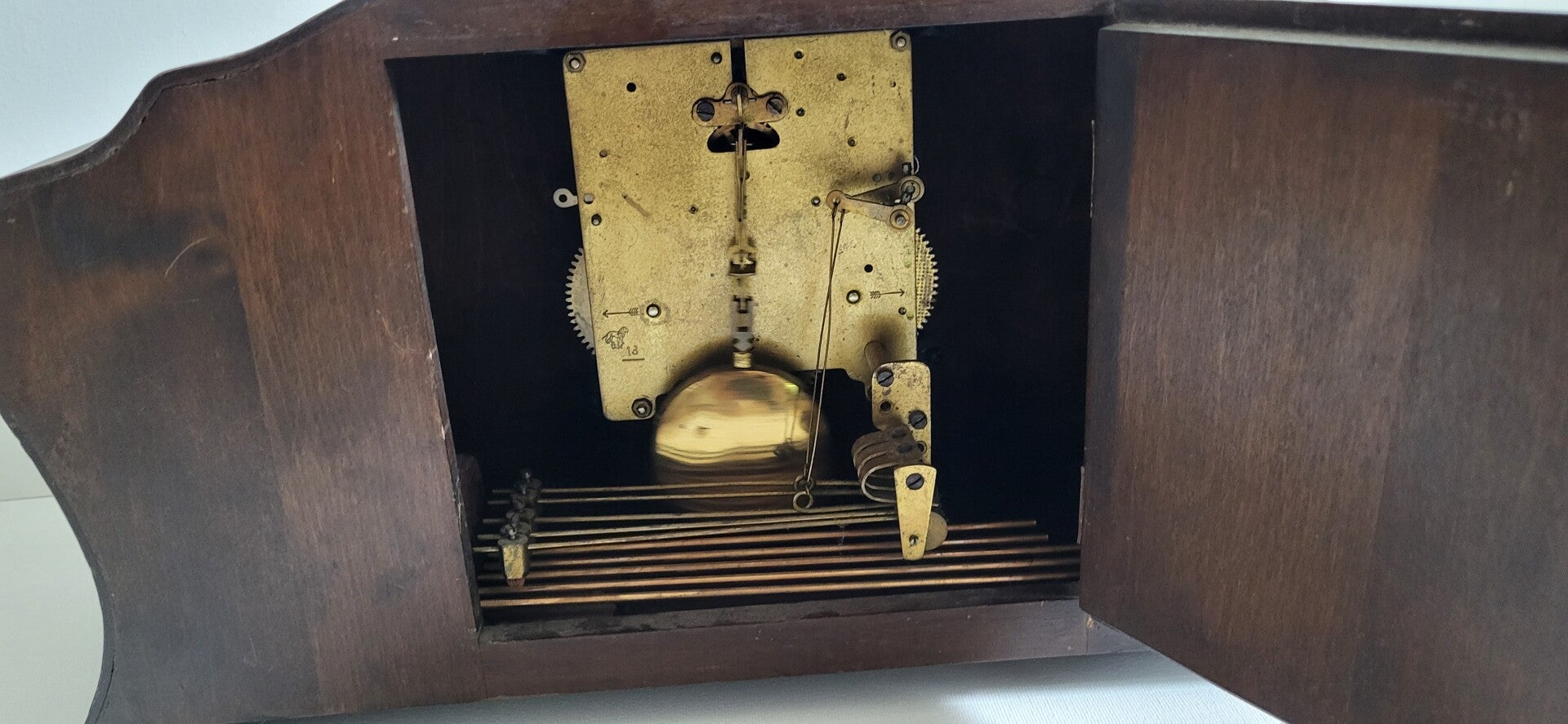Elegante Kaminuhr von Junghans mit goldenem Ziffernblatt. Gepflegt und frisch gewachsen von Rebekka. Guter Zustand. Läuft noch nicht einwandfrei, Sven bleibt aber dran.