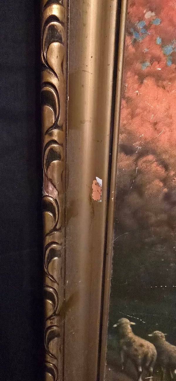 Grosses gerahmtes Bild – Schäfer mit Herde, goldfarbener Rahmen