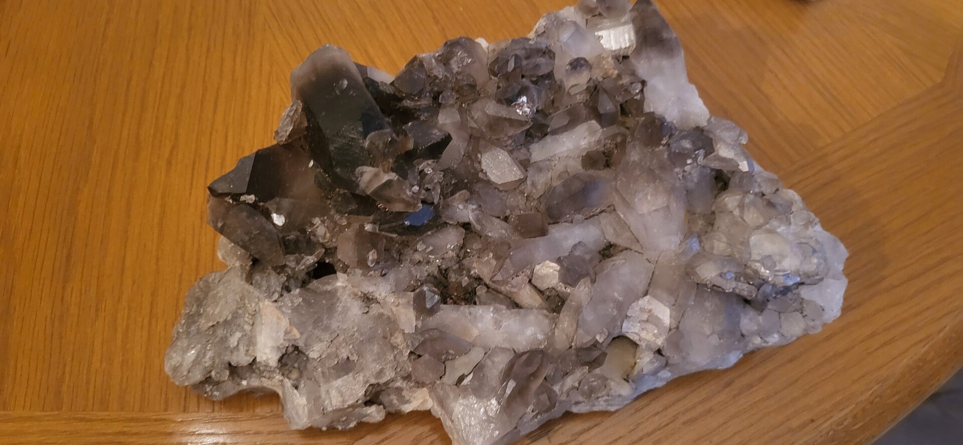 Ein richtig schönes Naturstück: kräftige Rauchquarz-Spitzen, viele kleine Kristalle und tolle Struktur. Perfekt als Deko, für die Sammlung oder einfach zum Anschauen und Staunen.Ein echtes Unikat aus der Natur – gibt’s nur einmal.